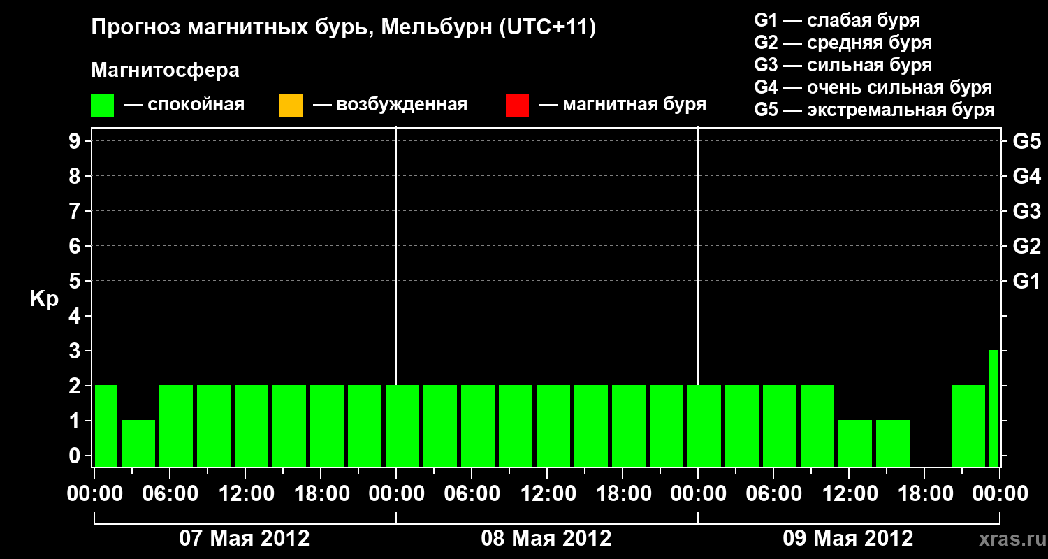 Прогноз магнитных бурь в Мельбурне — 7 мая 2012 года