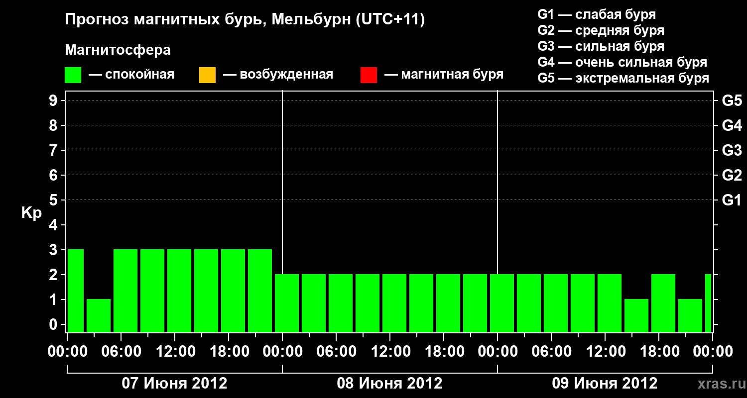 Прогноз магнитных бурь в Мельбурне — 7 июня 2012 года
