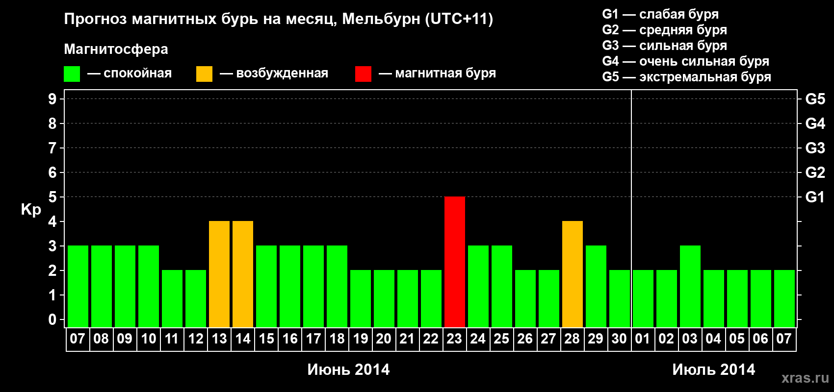 Прогноз магнитных бурь в Мельбурне — 7 июня 2014 года