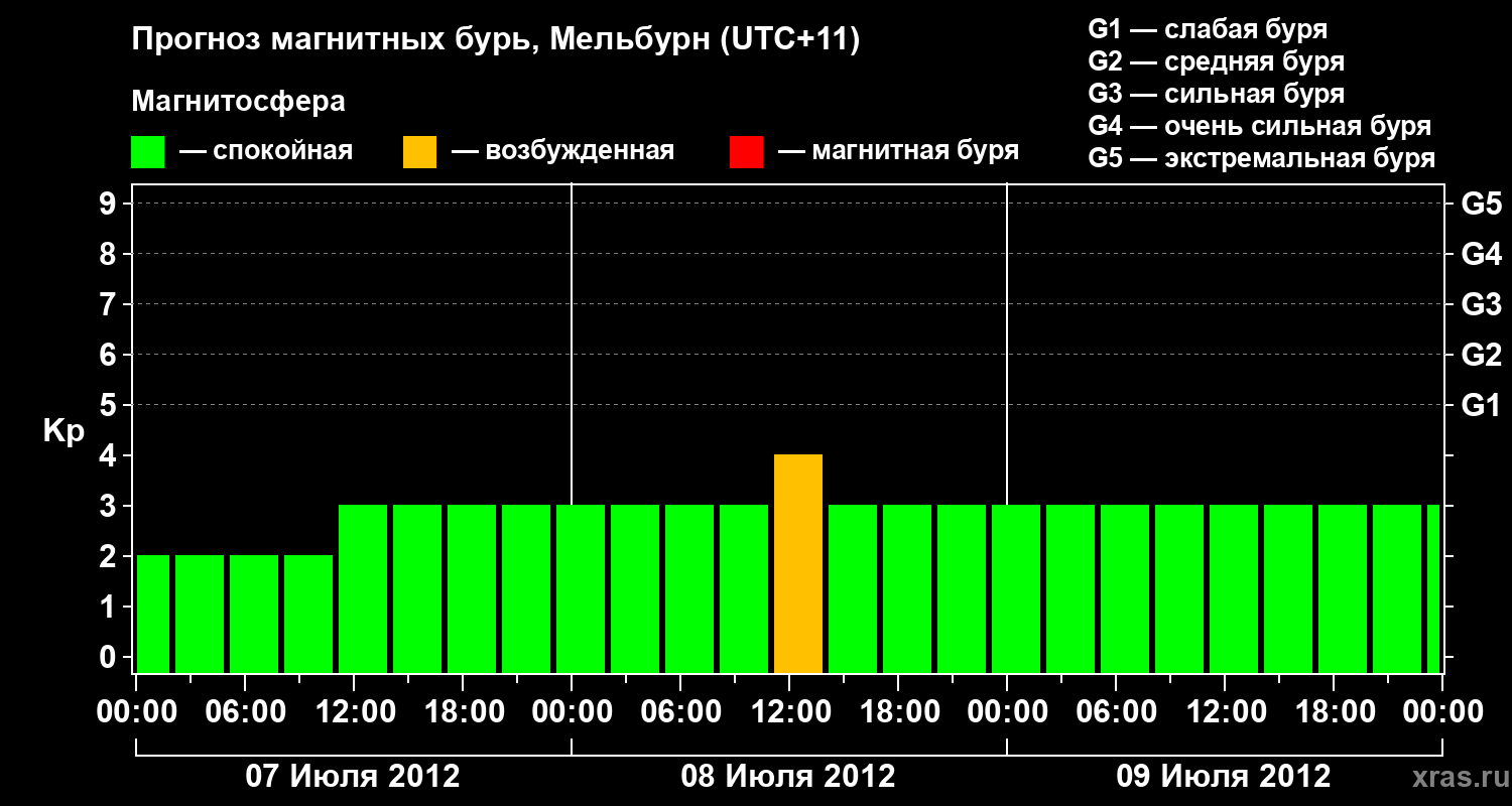 Прогноз магнитных бурь в Мельбурне — 7 июля 2012 года