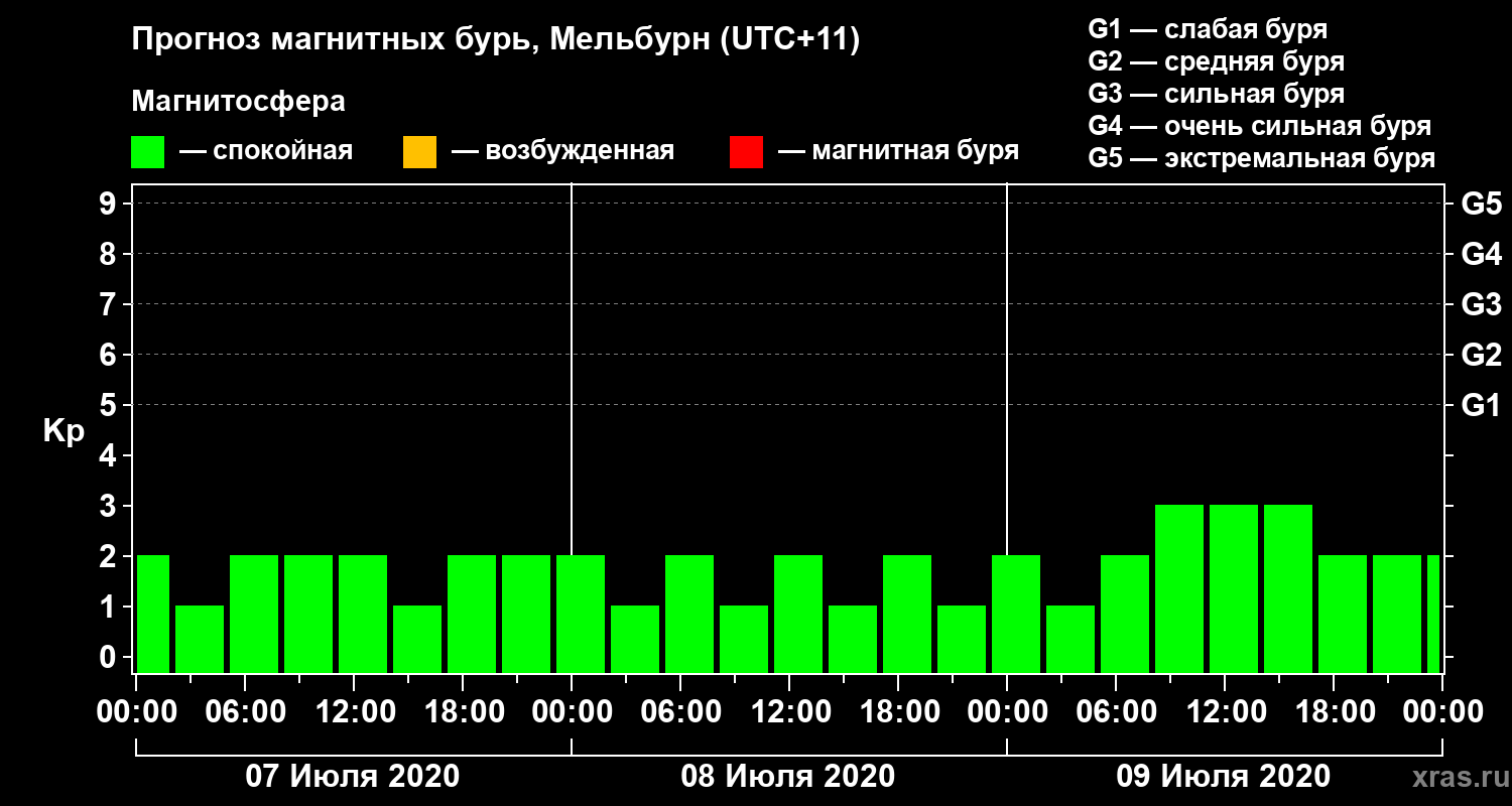 Прогноз магнитных бурь в Мельбурне — 7 июля 2020 года