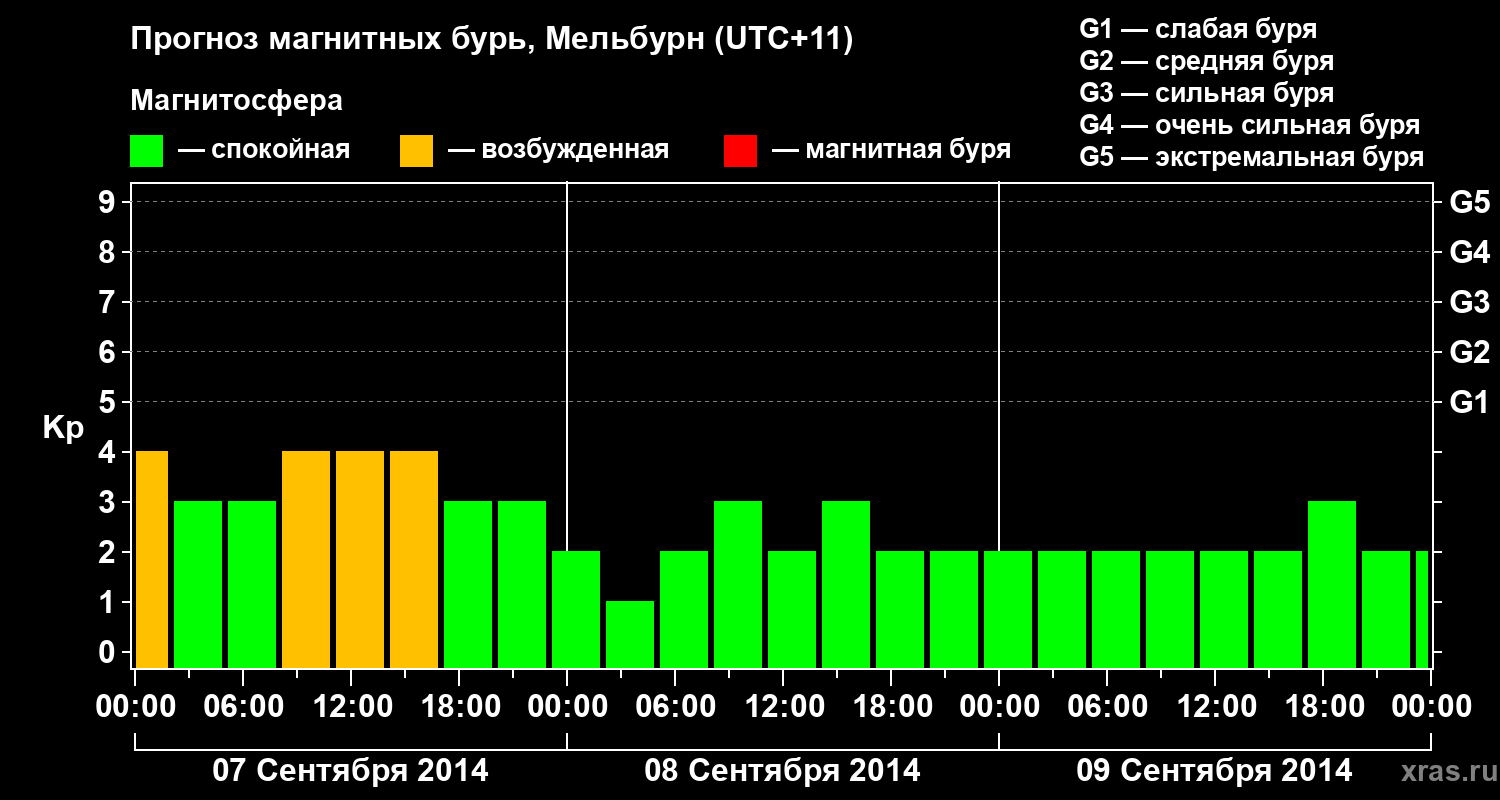 Прогноз магнитных бурь в Мельбурне — 7 сентября 2014 года