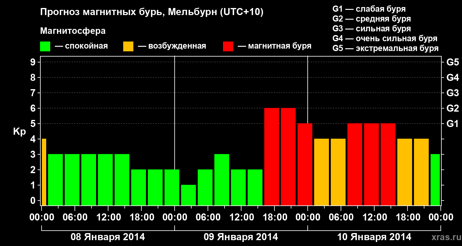Прогноз магнитных бурь в Мельбурне — 8 января 2014 года