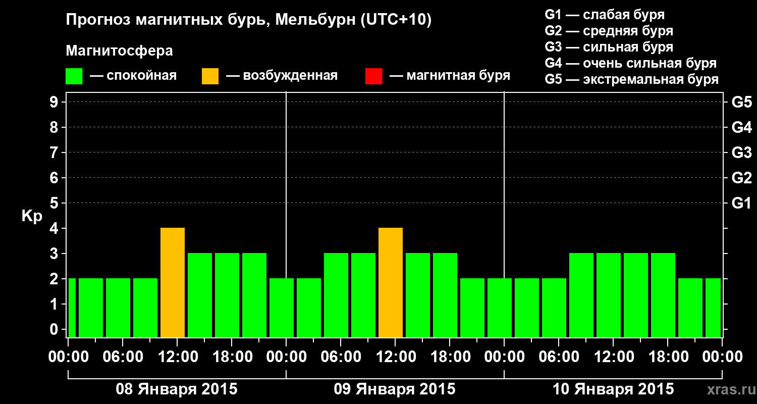 Прогноз магнитных бурь в Мельбурне — 8 января 2015 года