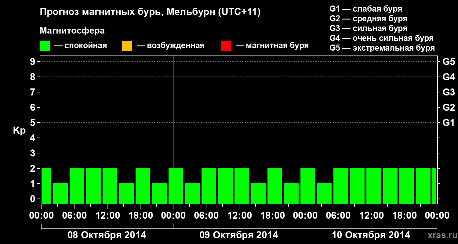 Прогноз магнитных бурь в Мельбурне — 8 октября 2014 года