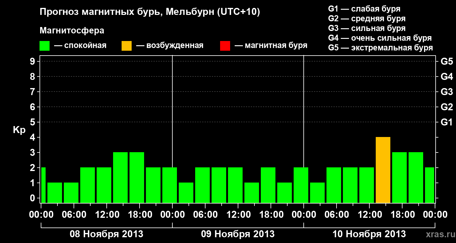 Прогноз магнитных бурь в Мельбурне — 8 ноября 2013 года