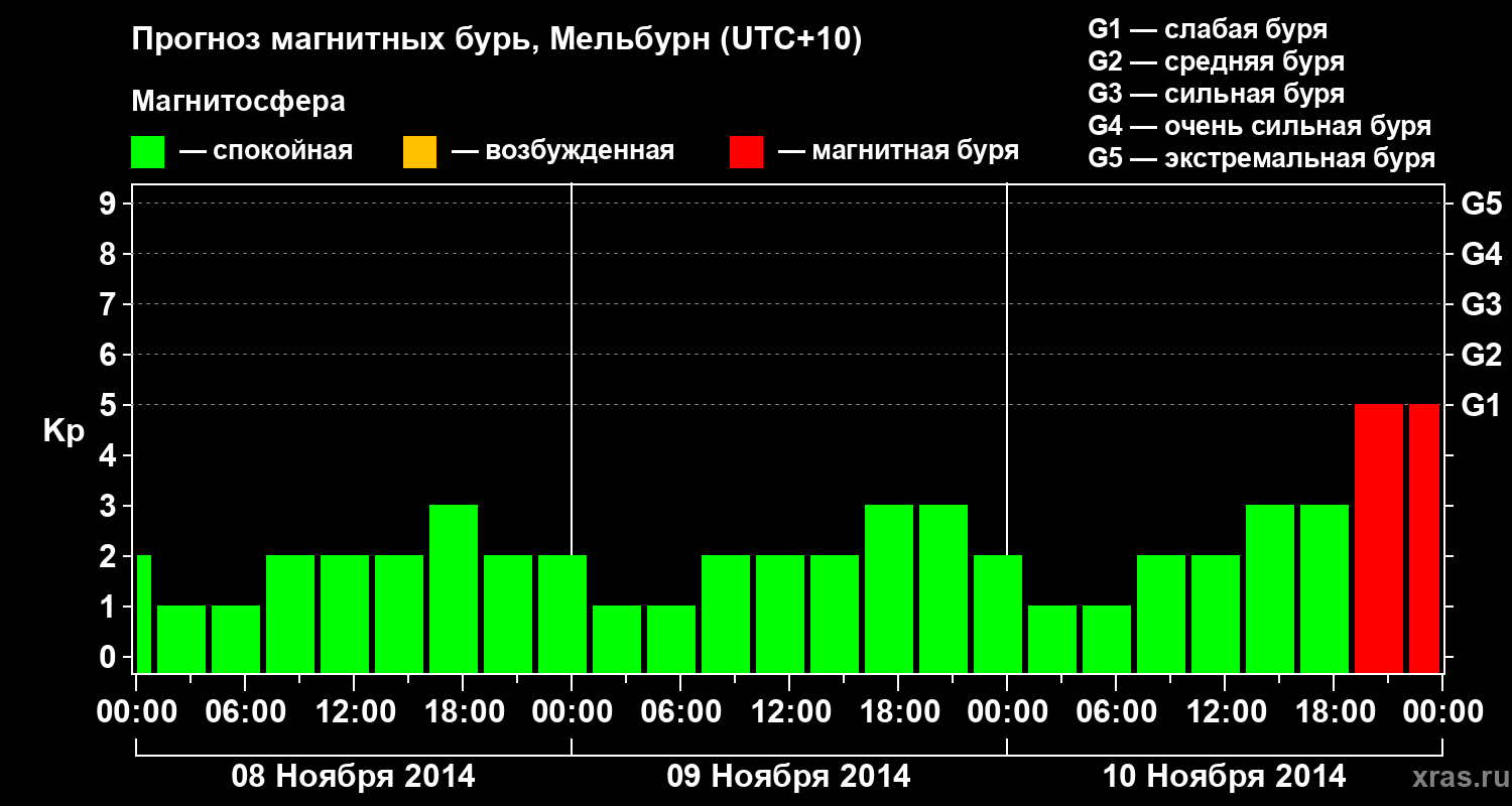 Прогноз магнитных бурь в Мельбурне — 8 ноября 2014 года