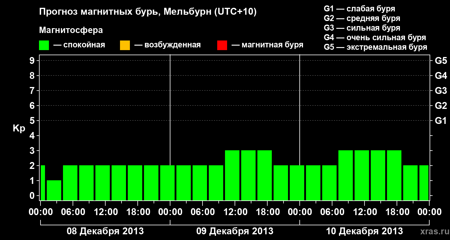 Прогноз магнитных бурь в Мельбурне — 8 декабря 2013 года