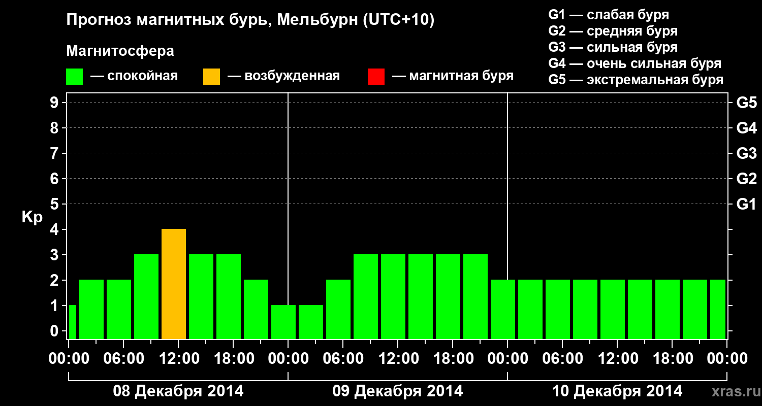 Прогноз магнитных бурь в Мельбурне — 8 декабря 2014 года