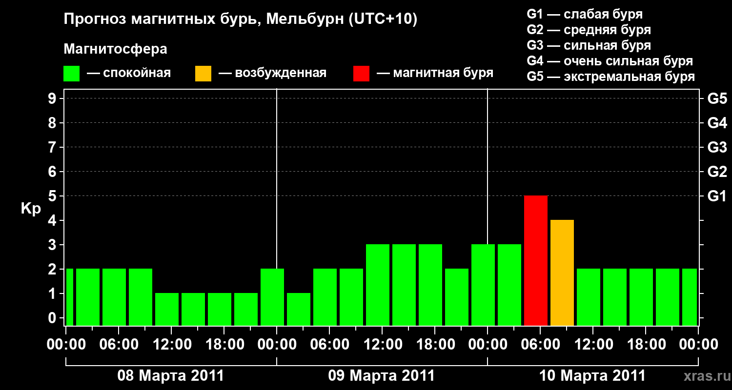 Прогноз магнитных бурь в Мельбурне — 8 марта 2011 года