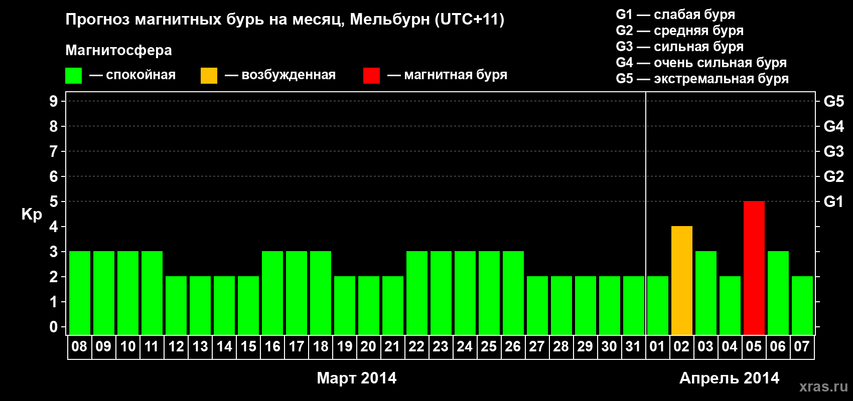 Прогноз магнитных бурь в Мельбурне — 8 марта 2014 года