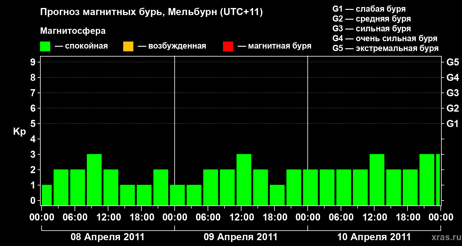 Прогноз магнитных бурь в Мельбурне — 8 апреля 2011 года
