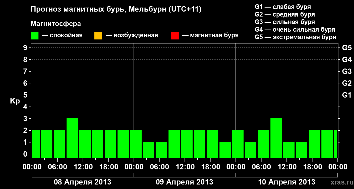 Прогноз магнитных бурь в Мельбурне — 8 апреля 2013 года