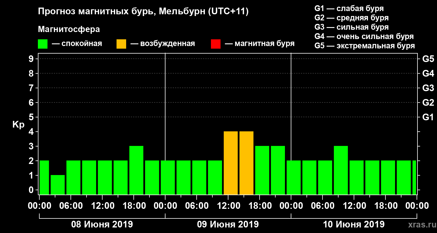 Прогноз магнитных бурь в Мельбурне — 8 июня 2019 года