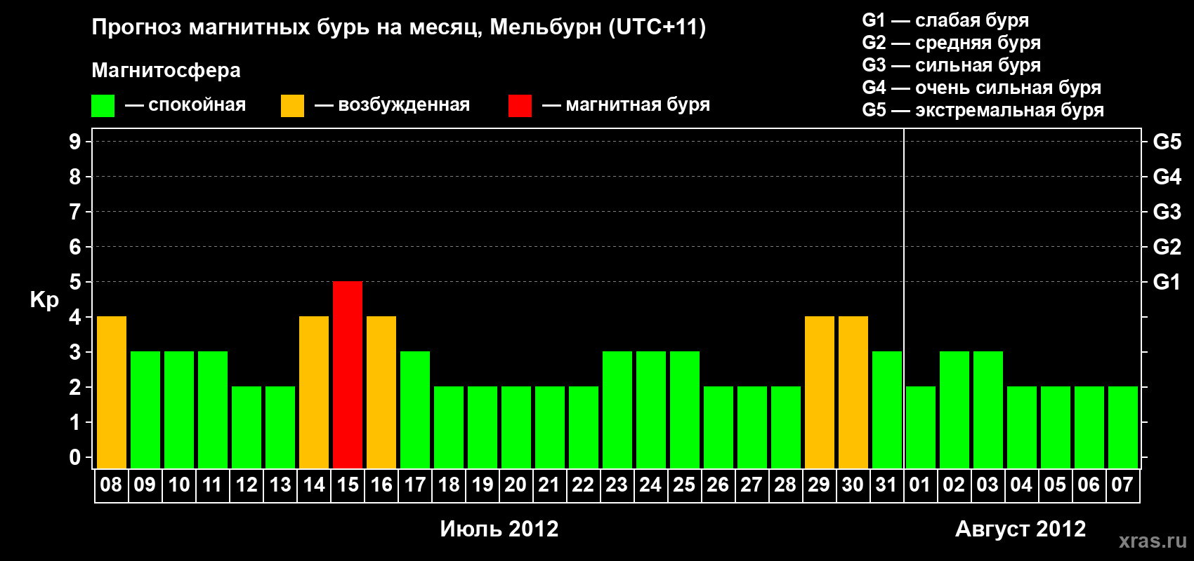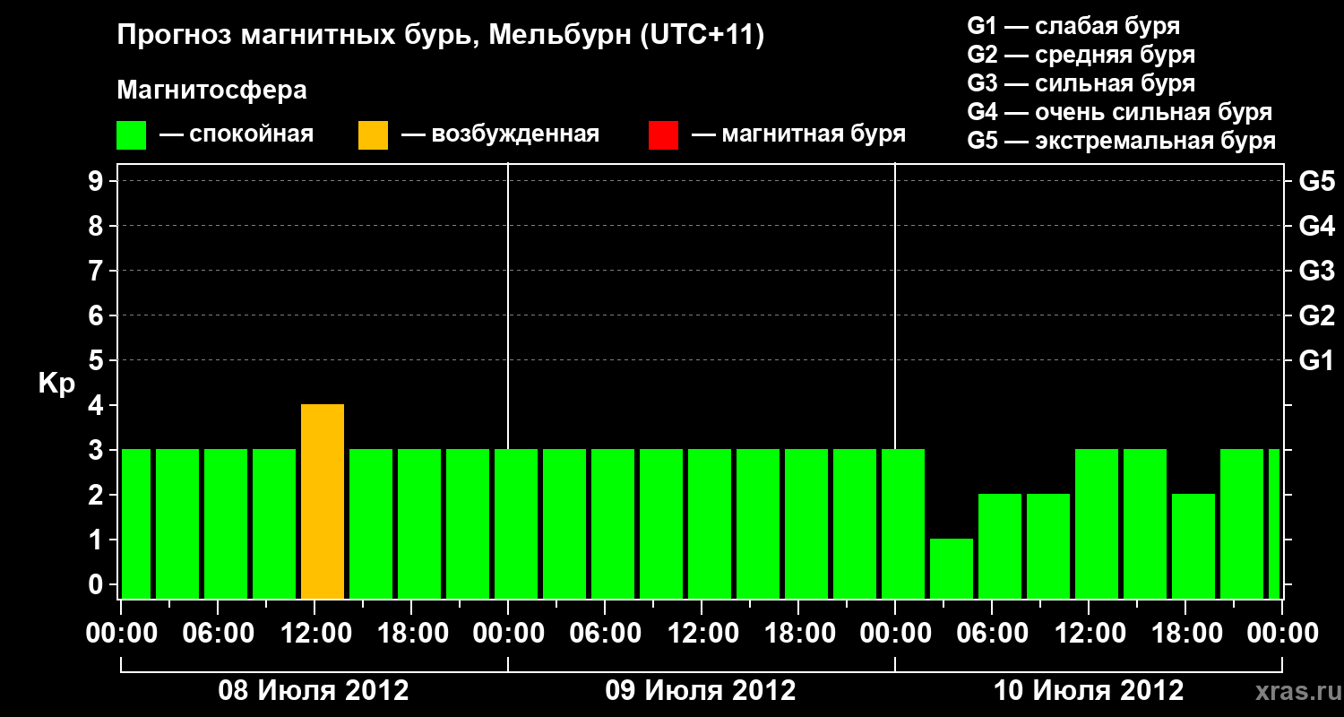 Прогноз магнитных бурь в Мельбурне — 8 июля 2012 года