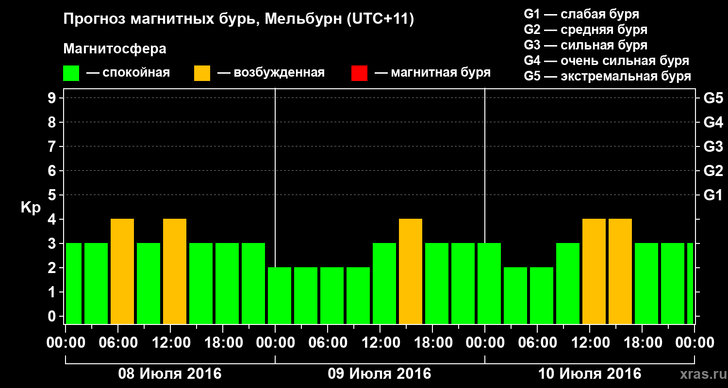 Прогноз магнитных бурь в Мельбурне — 8 июля 2016 года