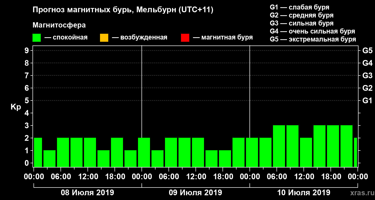 Прогноз магнитных бурь в Мельбурне — 8 июля 2019 года