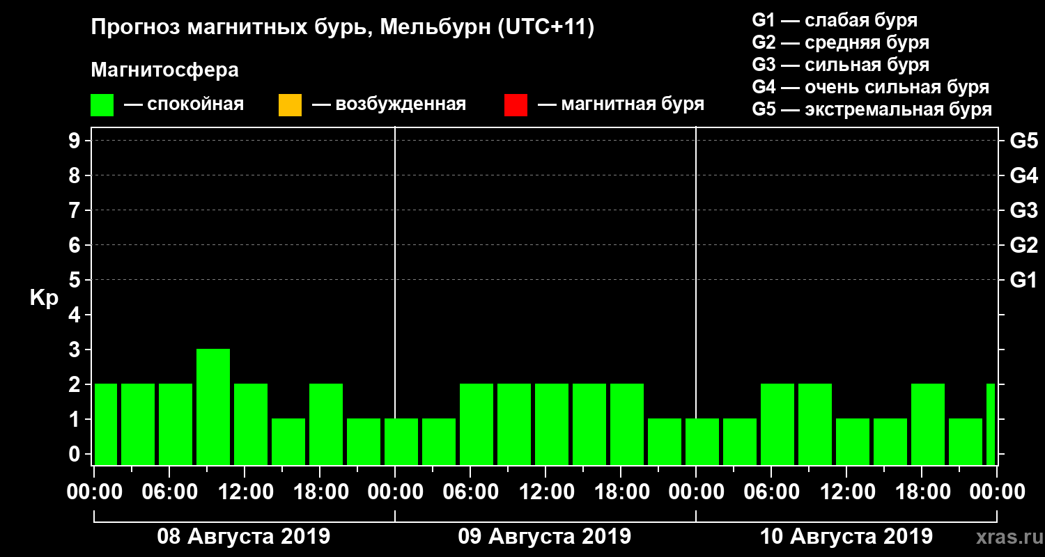 Прогноз магнитных бурь в Мельбурне — 8 августа 2019 года