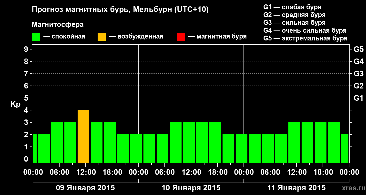 Прогноз магнитных бурь в Мельбурне — 9 января 2015 года