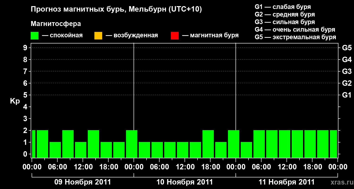Прогноз магнитных бурь в Мельбурне — 9 ноября 2011 года