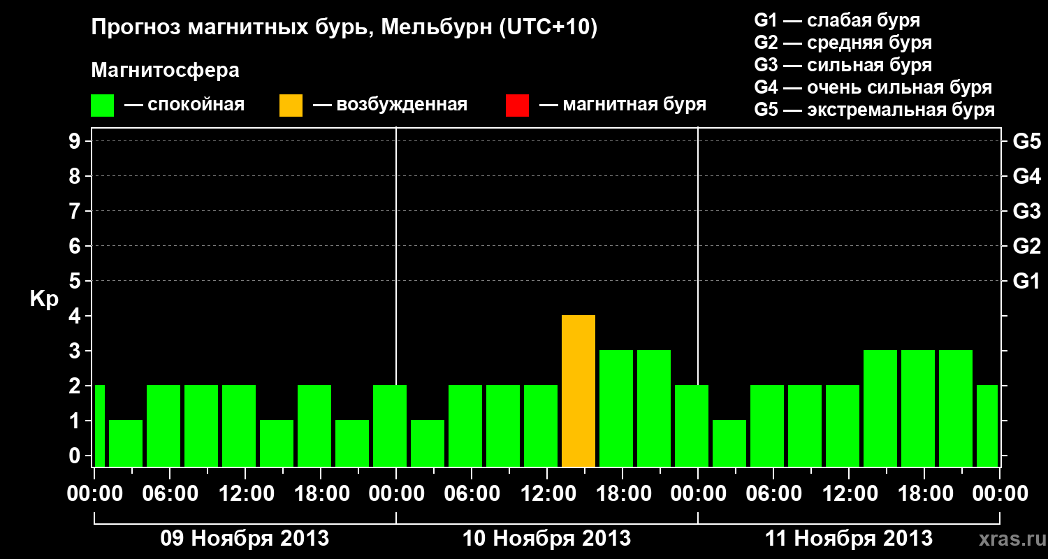 Прогноз магнитных бурь в Мельбурне — 9 ноября 2013 года