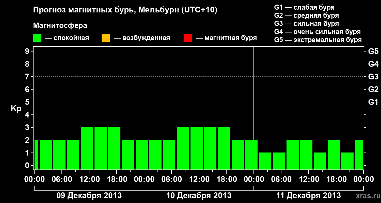 Прогноз магнитных бурь в Мельбурне — 9 декабря 2013 года