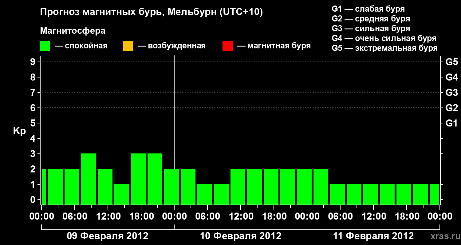 Прогноз магнитных бурь в Мельбурне — 9 февраля 2012 года
