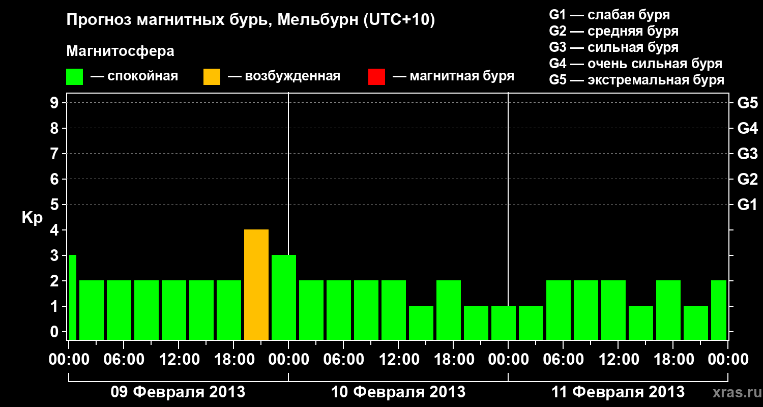Прогноз магнитных бурь в Мельбурне — 9 февраля 2013 года
