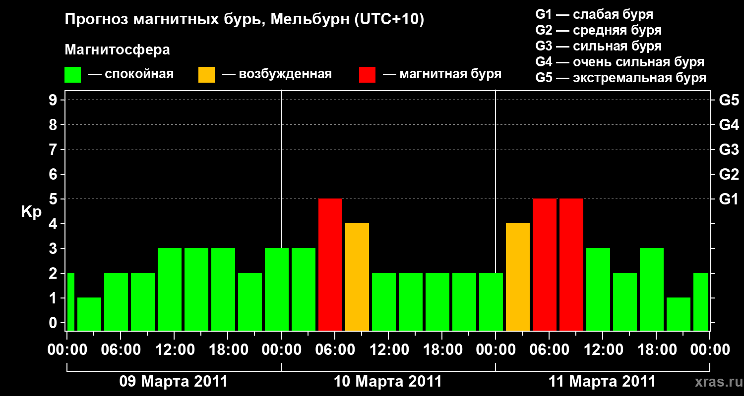Прогноз магнитных бурь в Мельбурне — 9 марта 2011 года