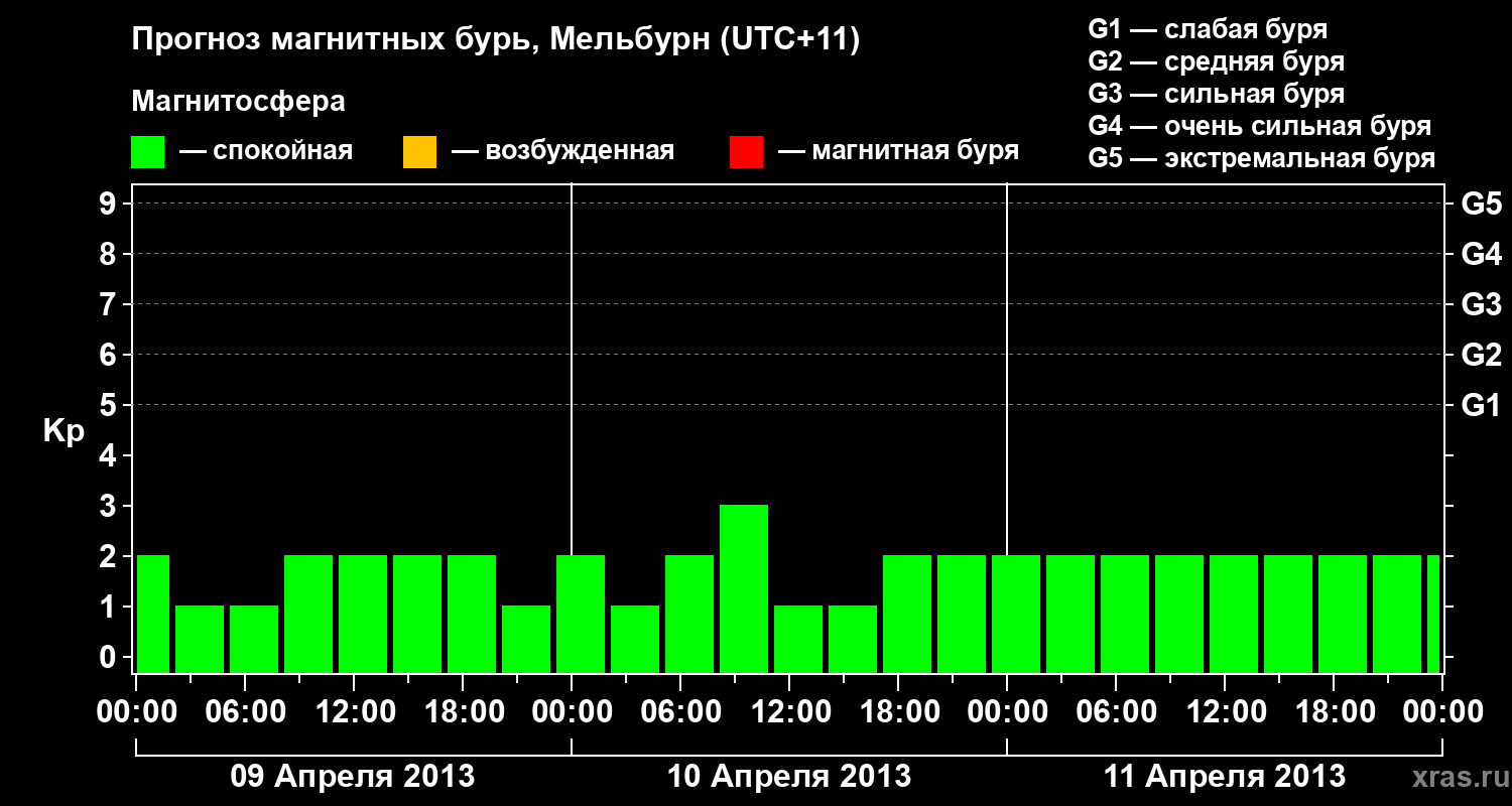 Прогноз магнитных бурь в Мельбурне — 9 апреля 2013 года