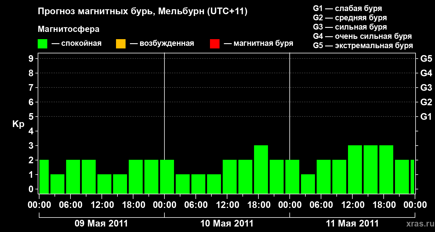 Прогноз магнитных бурь в Мельбурне — 9 мая 2011 года