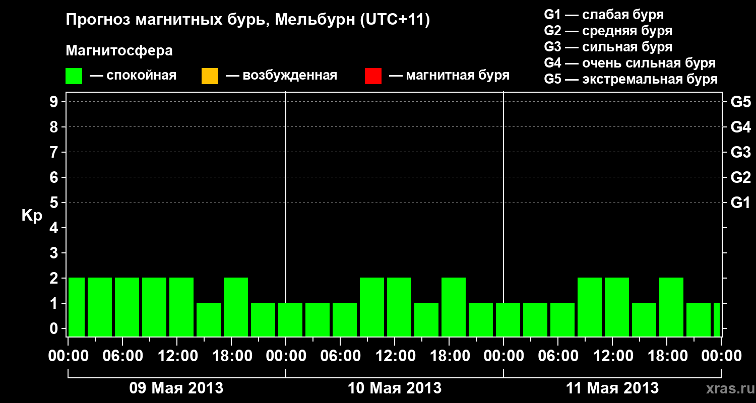 Прогноз магнитных бурь в Мельбурне — 9 мая 2013 года