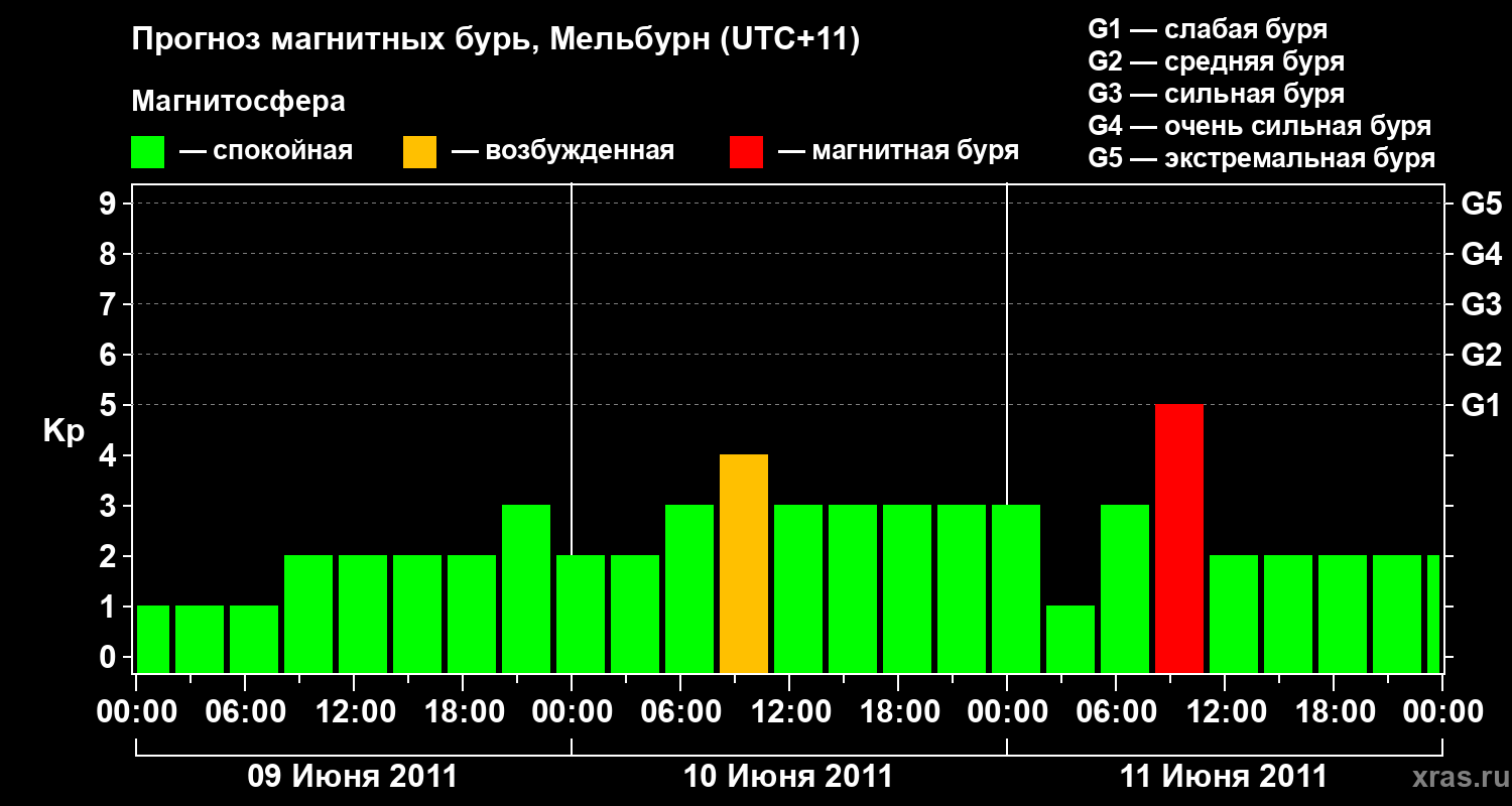 Прогноз магнитных бурь в Мельбурне — 9 июня 2011 года