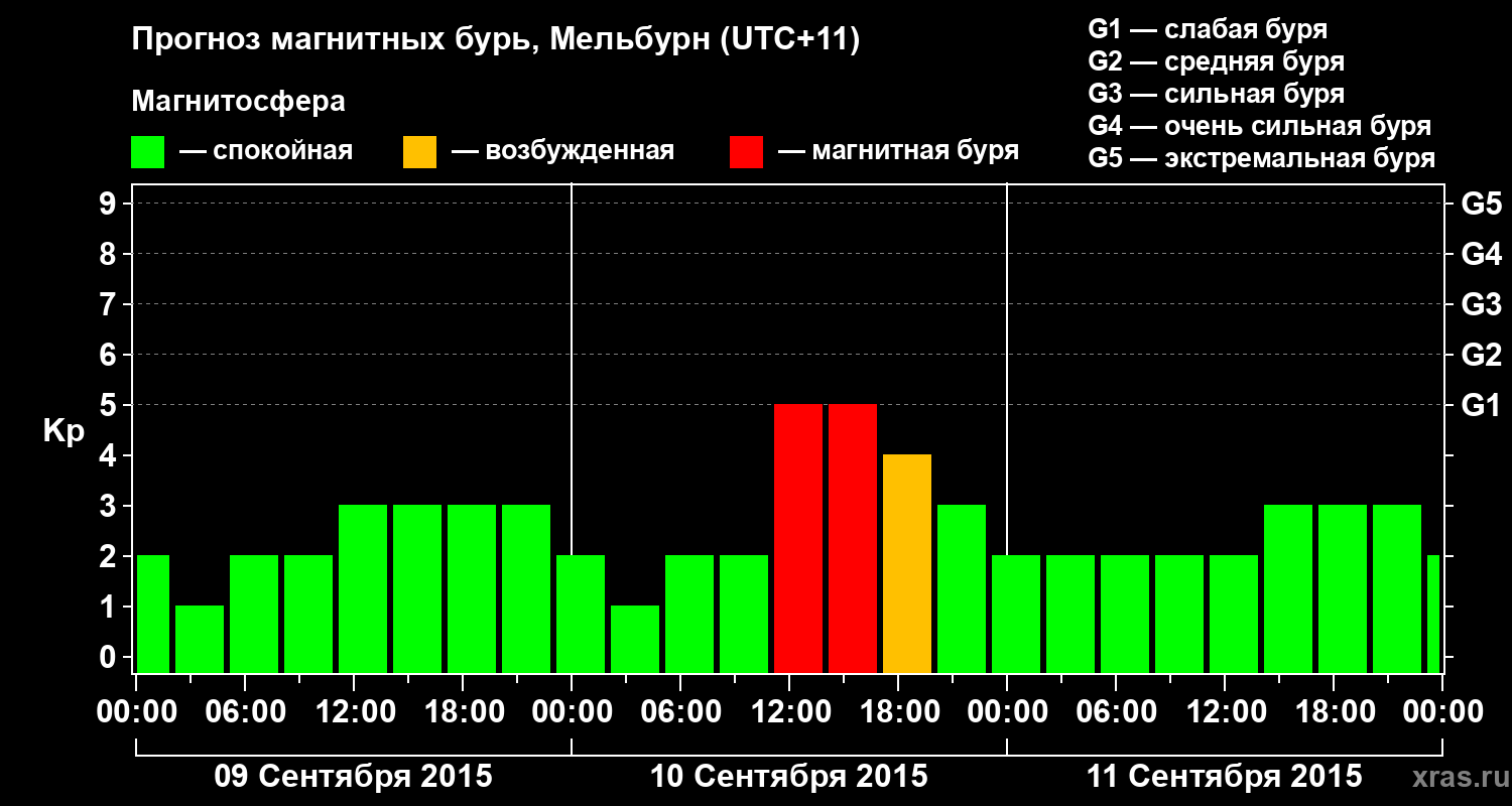 Прогноз магнитных бурь в Мельбурне — 9 сентября 2015 года