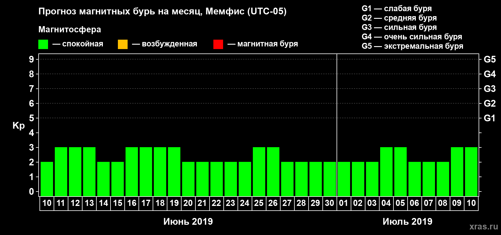 Прогноз магнитных бурь в Мемфисе — 10 июня 2019 года