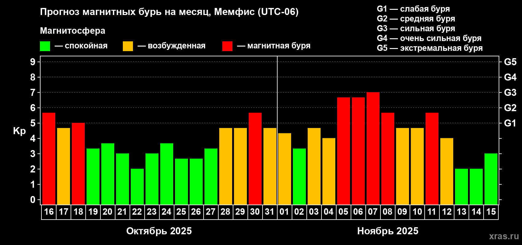 Прогноз магнитных бурь в Мемфисе — 16 октября 2025 года
