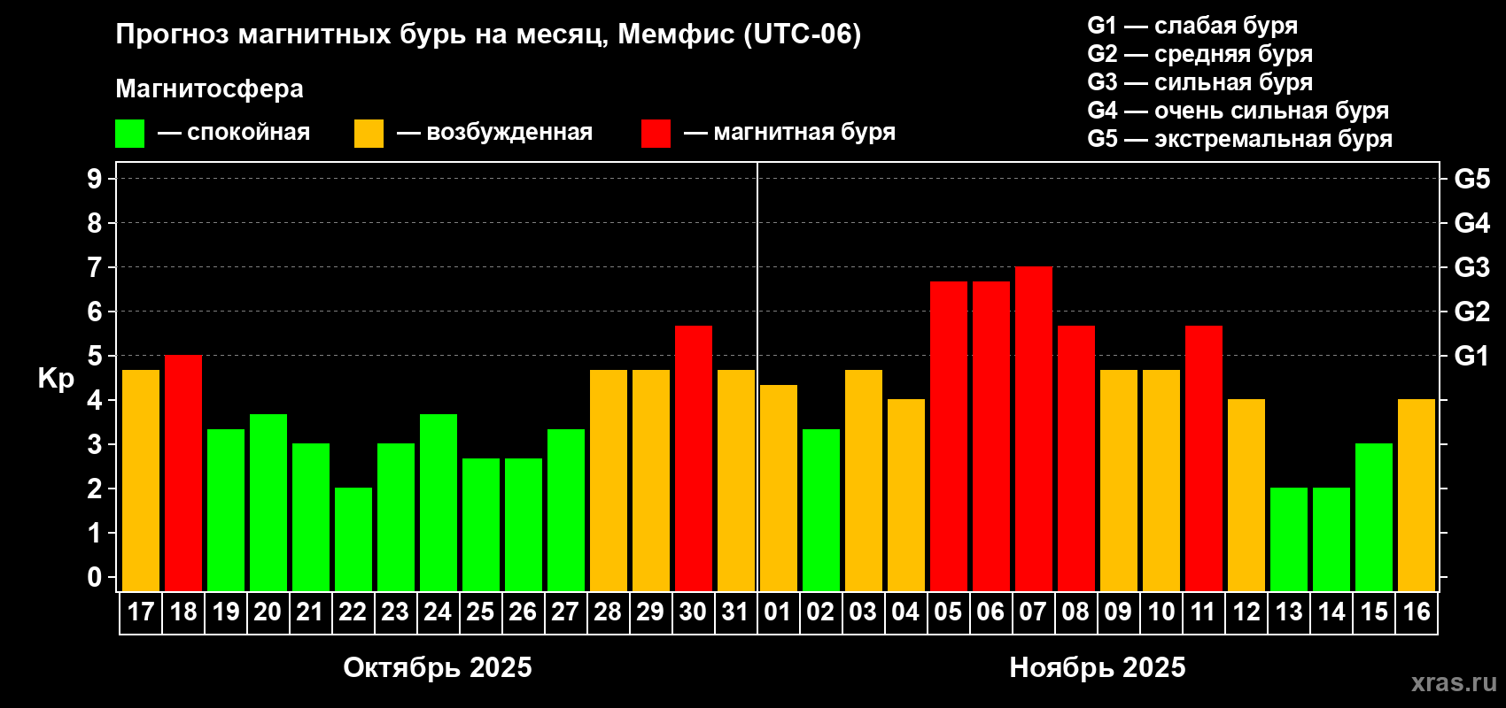 Прогноз магнитных бурь в Мемфисе — 17 октября 2025 года