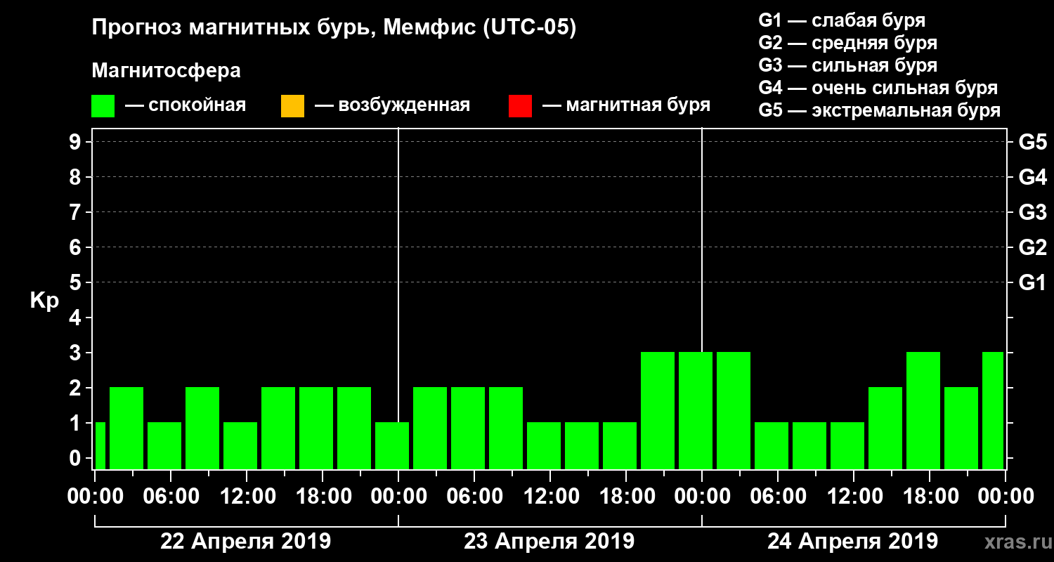 Прогноз магнитных бурь в Мемфисе на 22 апреля 2019 года