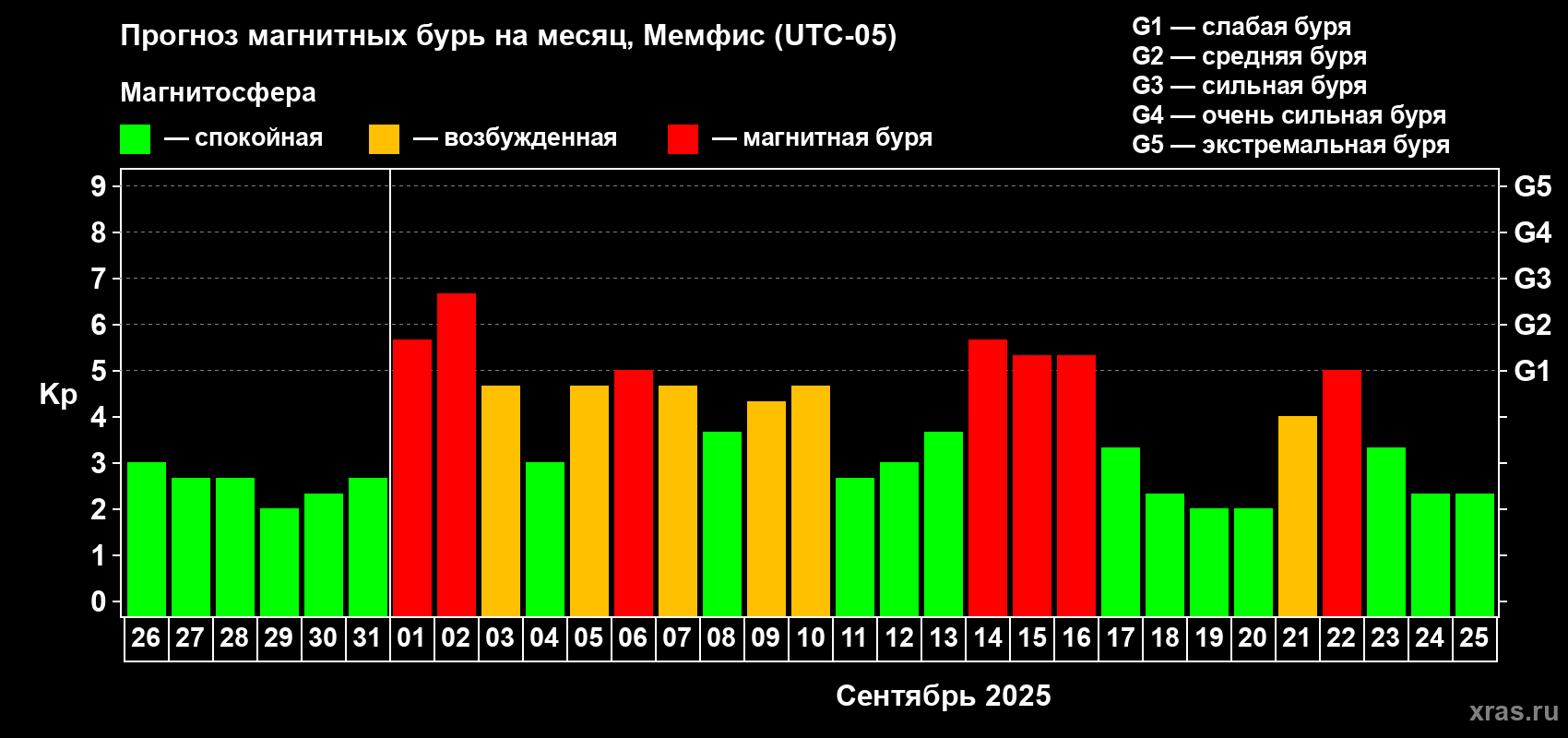 Прогноз магнитных бурь в Мемфисе — 26 августа 2025 года