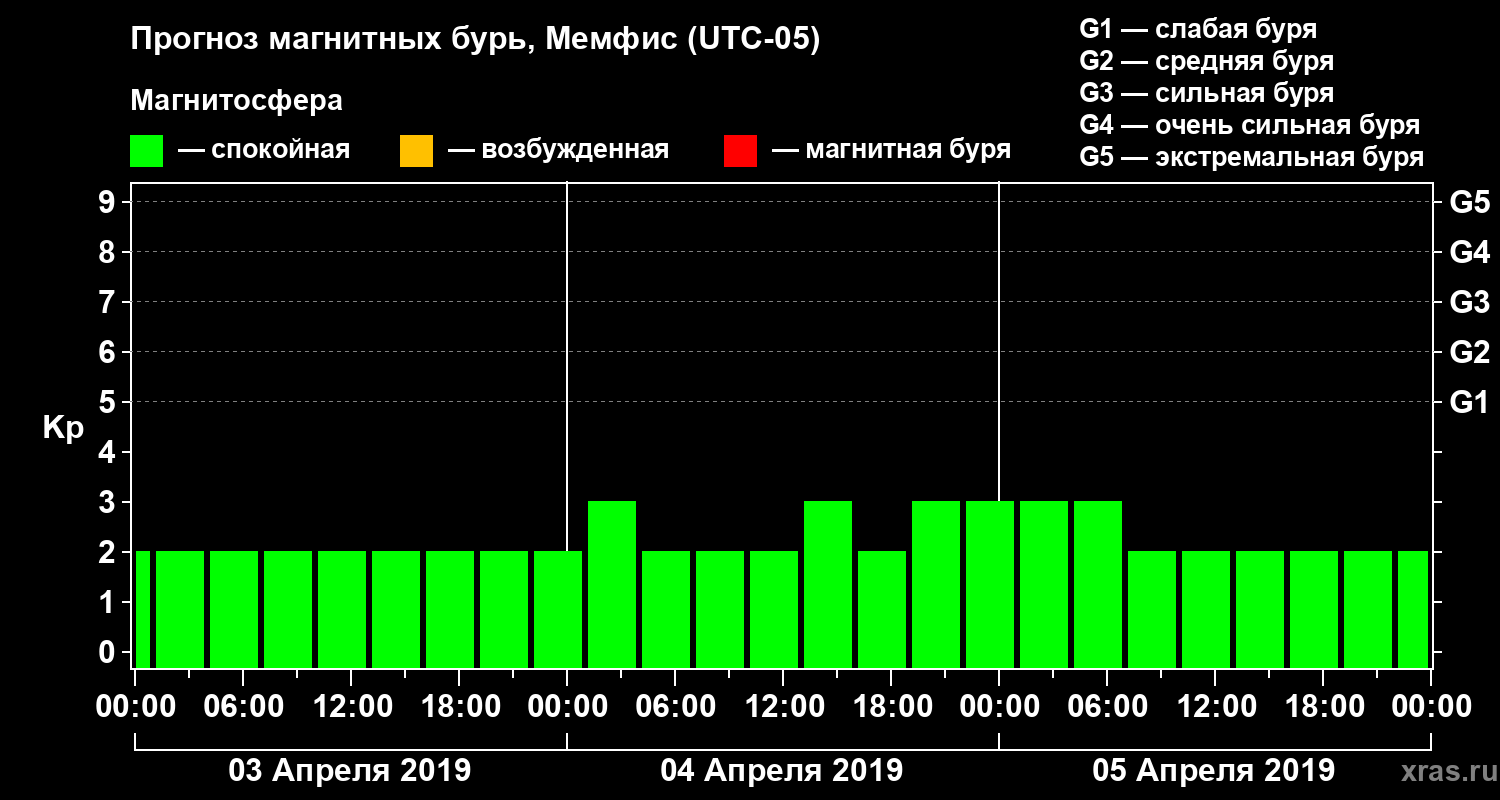 Прогноз магнитных бурь в Мемфисе — 3 апреля 2019 года