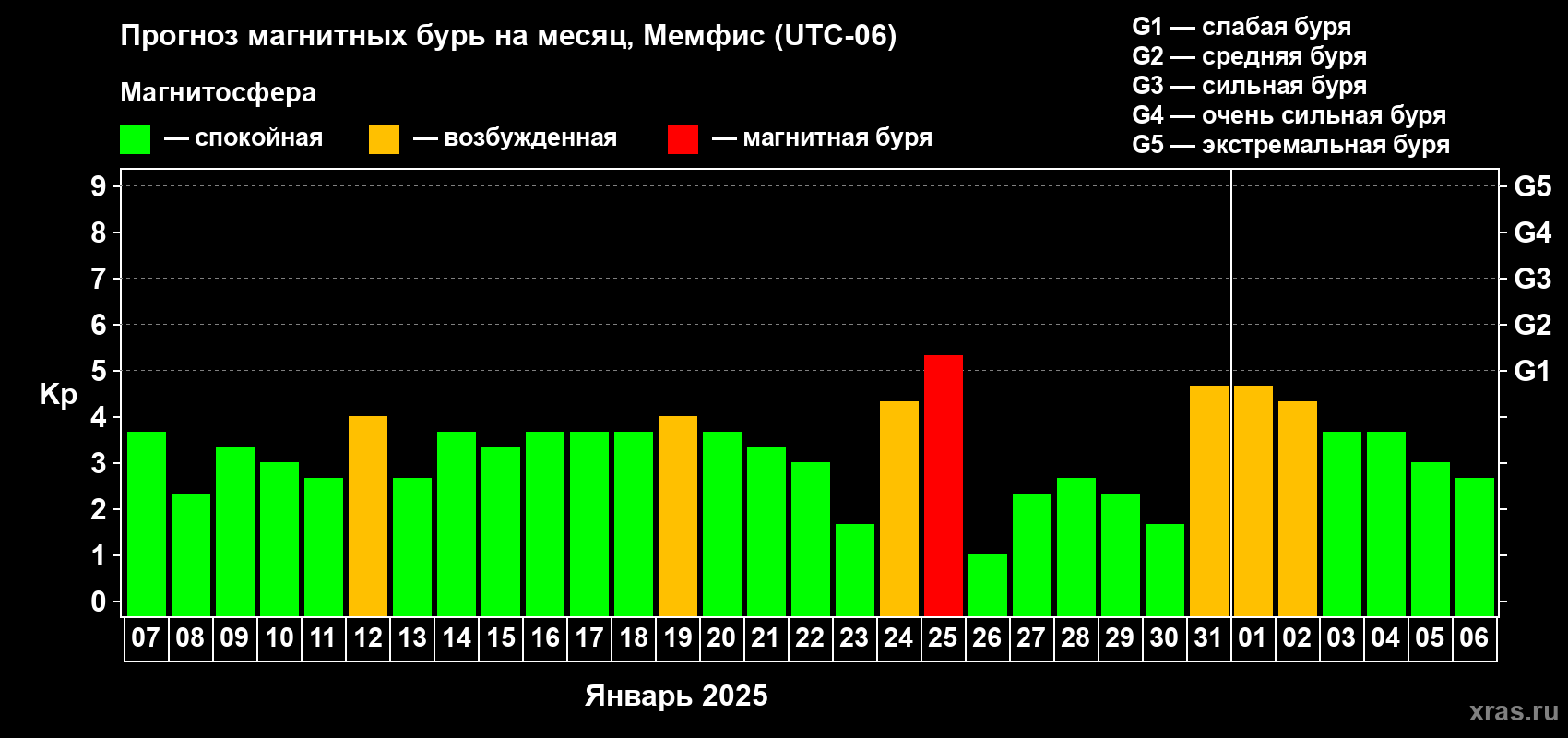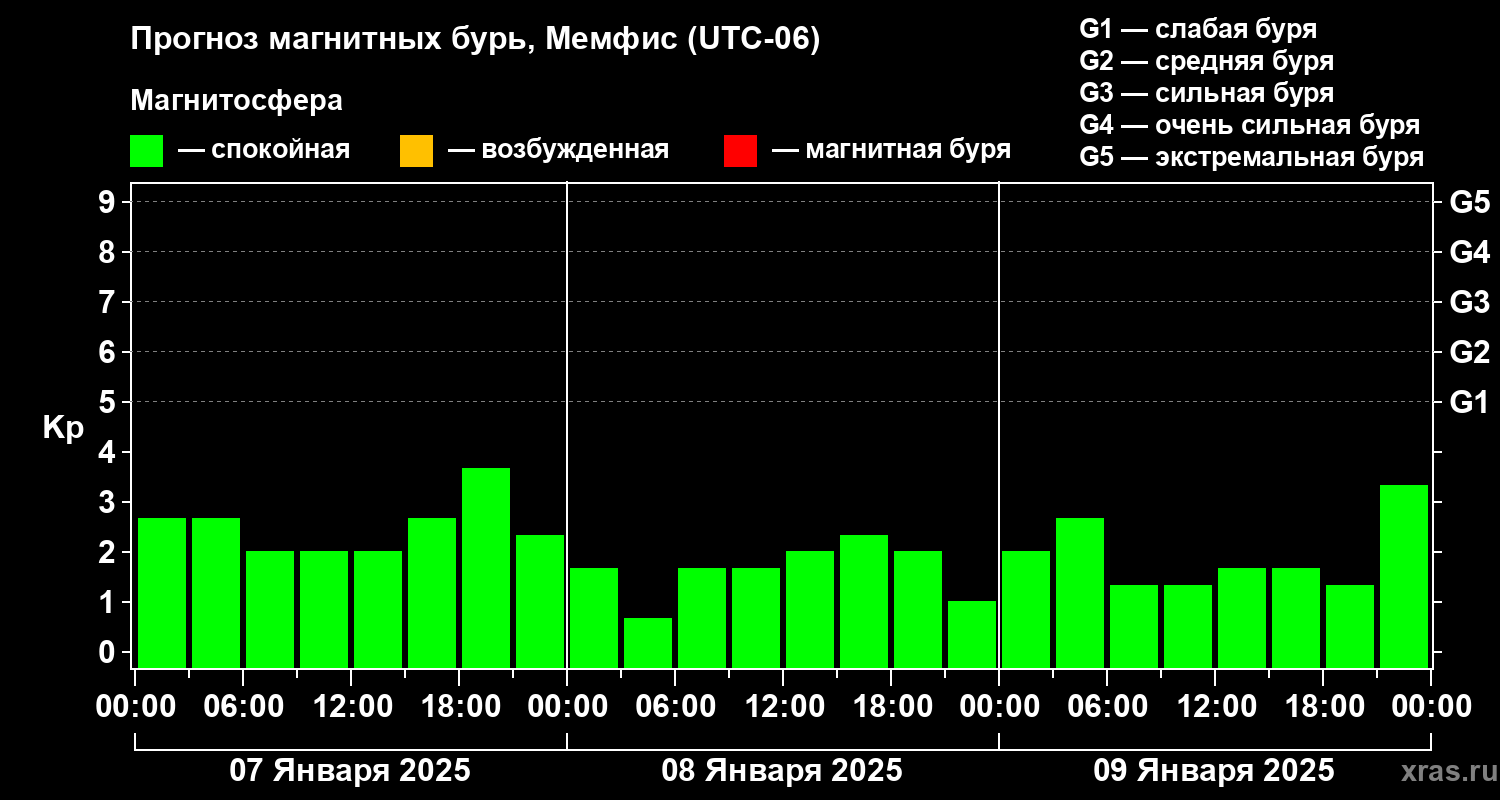 Прогноз магнитных бурь в Мемфисе — 7 января 2025 года