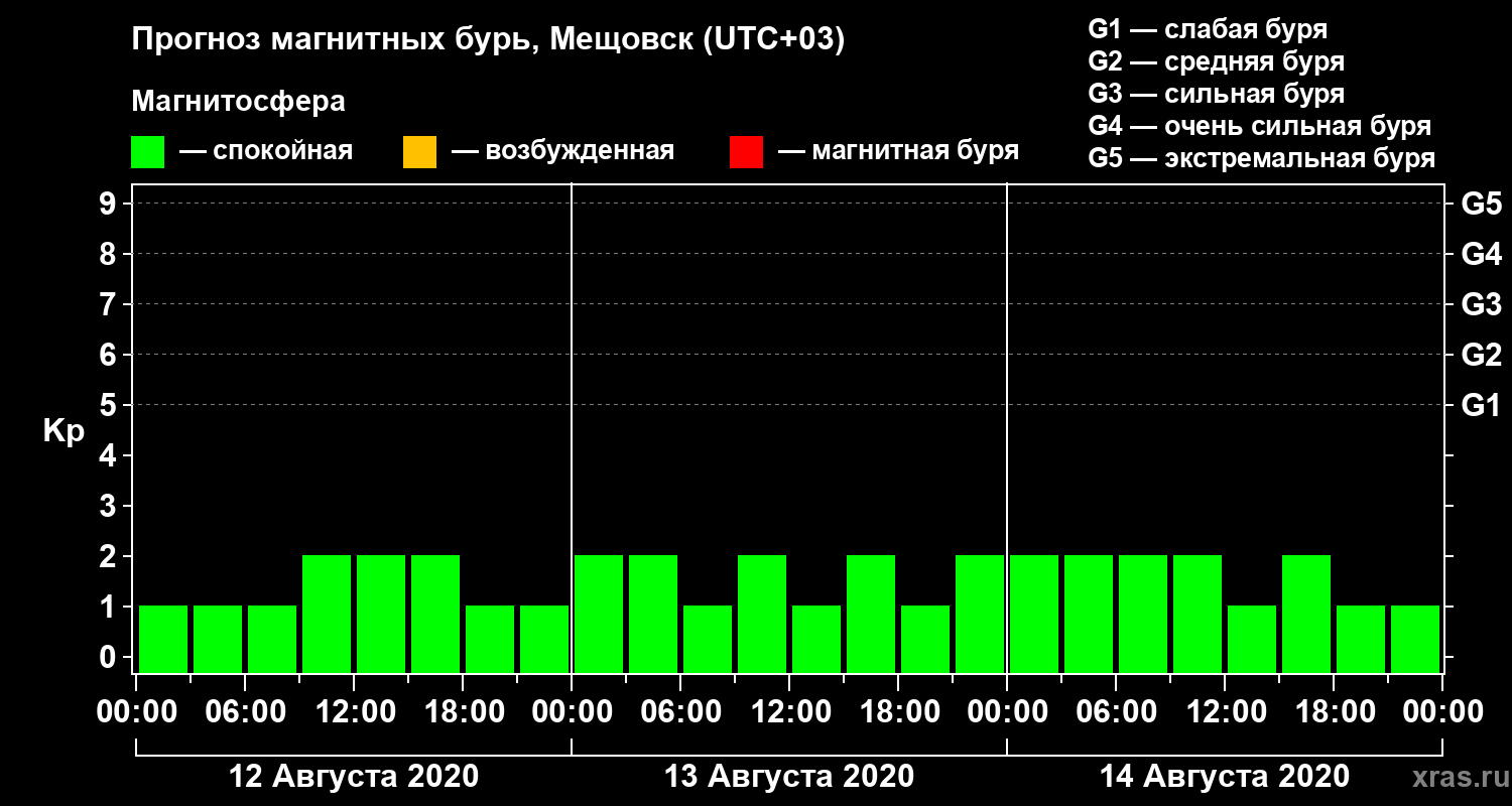 Прогноз магнитных бурь в Мещовске — 12 августа 2020 года