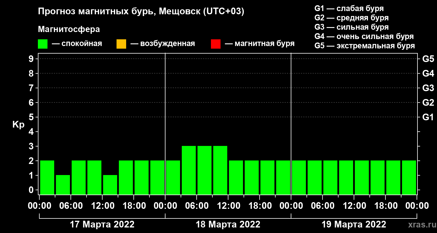 Прогноз магнитных бурь в Мещовске — 17 марта 2022 года