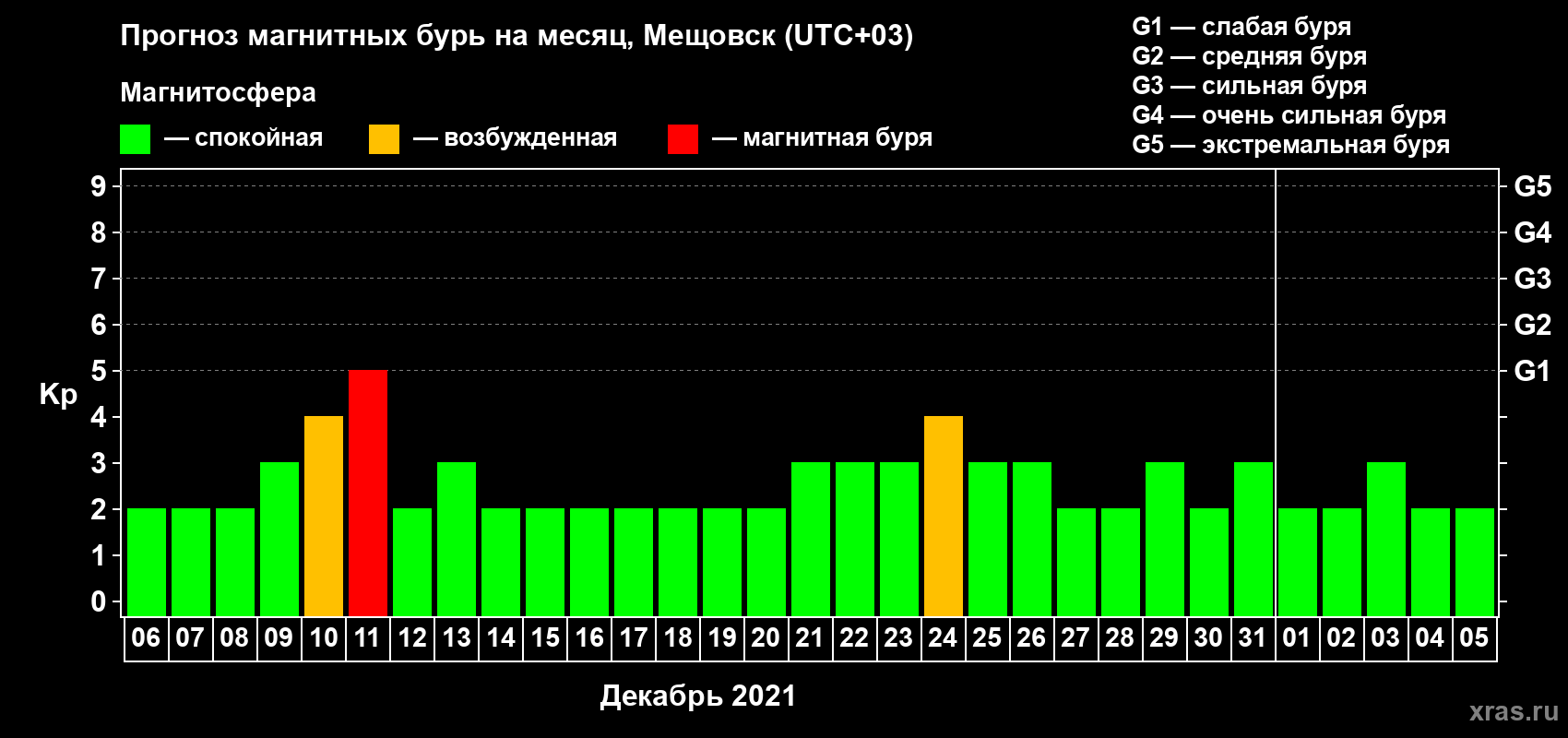 Прогноз магнитных бурь в Мещовске — 6 декабря 2020 года