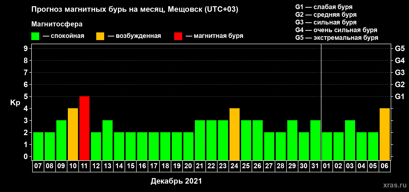 Прогноз магнитных бурь в Мещовске — 7 декабря 2020 года