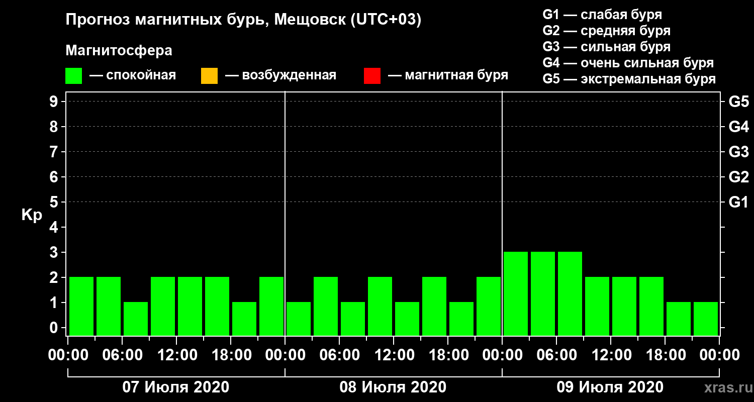 Прогноз магнитных бурь в Мещовске — 7 июля 2020 года