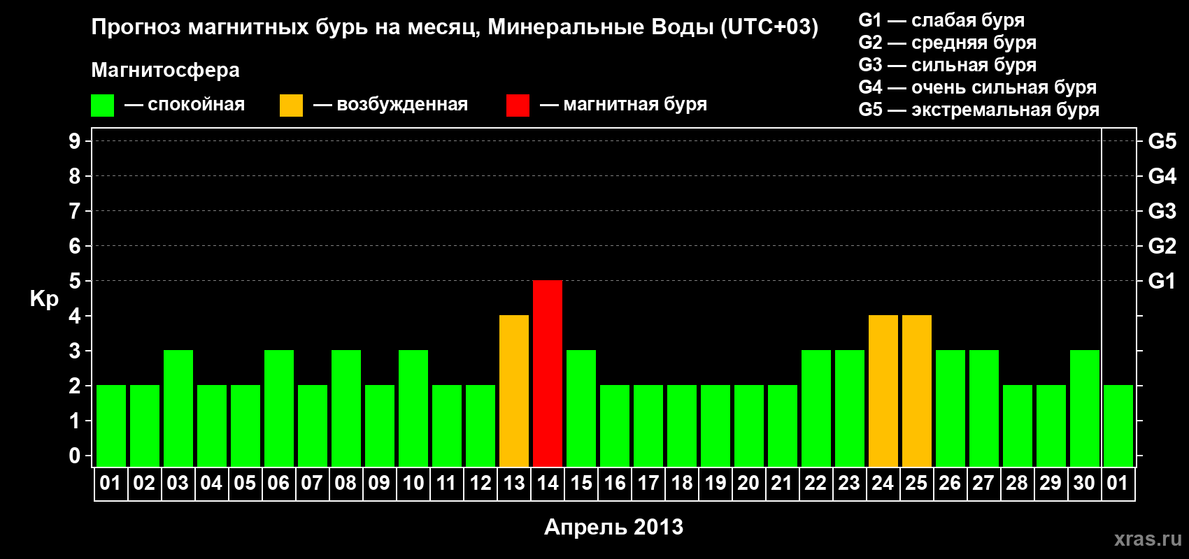 Прогноз магнитных бурь Минеральных Водах — 1 апреля 2013 года