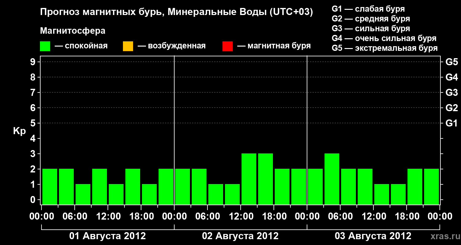 Прогноз магнитных бурь Минеральных Водах — 1 августа 2012 года
