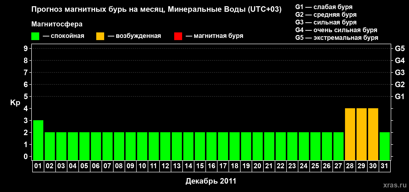 Прогноз магнитных бурь Минеральных Водах — 1 декабря 2011 года