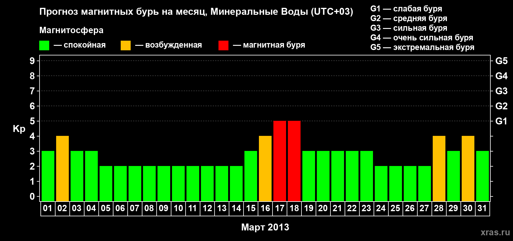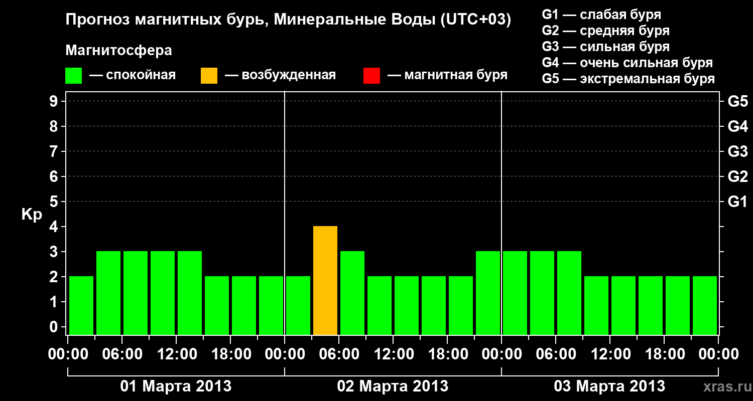 Прогноз магнитных бурь Минеральных Водах — 1 марта 2013 года